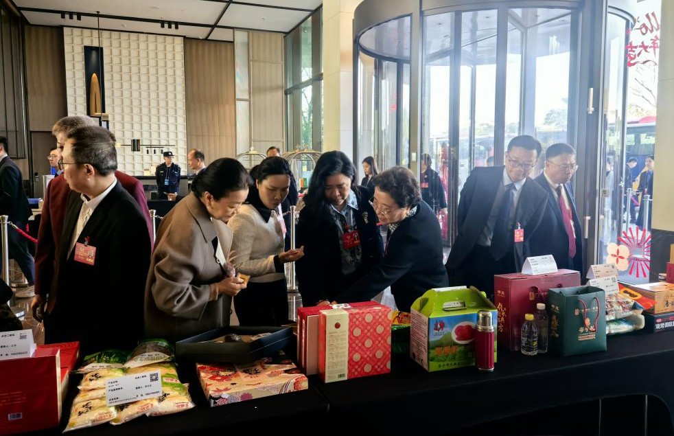 今年是省政协第二年采用地方特色菜品。在省政协委员驻地的“揭阳特产展区”,三棱橄榄、油柑、揭阳炒茶、猪肉脯、邹堂梨脯、清水笋丝、普宁豆酱等特色产品整齐陈列,吸引了众多省政协委员驻足观看、仔细品尝。其中,三棱橄榄、油柑、猪肉脯特别受欢迎,补了好几次货,还有好几位委员直接在企业微信号下单购买了揭阳特产。