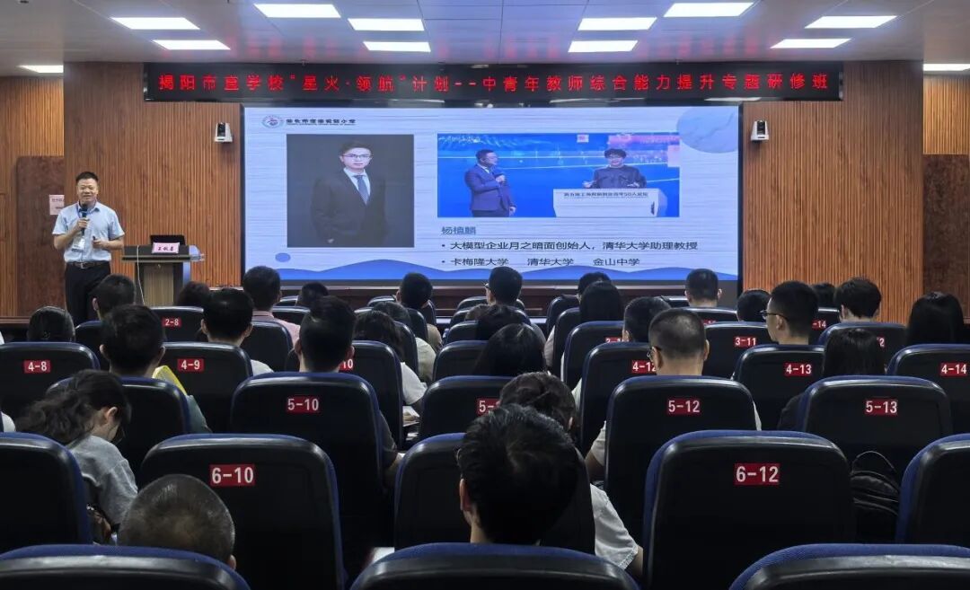 揭阳市直学校中青年教师综合能力提升研修班历经三天沉浸式研修,思维碰撞,逐渐激荡出教育的热力环流。24日,在纪胜辉与王秋喜两位校长的指引下,全体学员继续驾驶教育方舟在时代的浪潮中汲取智慧,探索学校课程构建的教育新航路,推动学校课程建设从“标准化移植”向“落地化生长”转型。