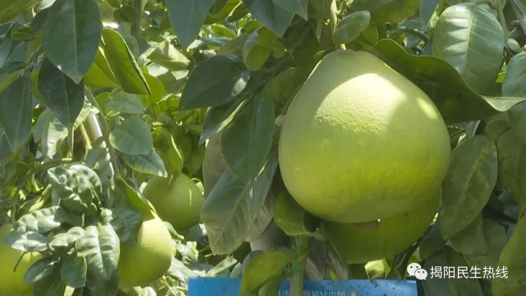 秋季,坪上镇潭角村柚子园中的“三红蜜柚”迎来了成熟期。这里的柚子种植项目由揭西县好丽柚种养专业合作社实施,种植面积520亩,年产值约200万元。柚子树从种植到结果大概需要五年。柚子挂果通常在3月,端午节前就要给柚子套上袋子,防病虫害。坪上镇依靠科学技术对蜜柚种植各环节进行优化,提高蜜柚种植质量和效率,促进蜜柚种植业科学化、合理化、规范化发展。为更好地进行品牌推广,潭角村蜜柚注册“好丽柚”商标,如今,“好丽柚”已入选“粤字号”农业品牌名录,并通过绿色食品认证。