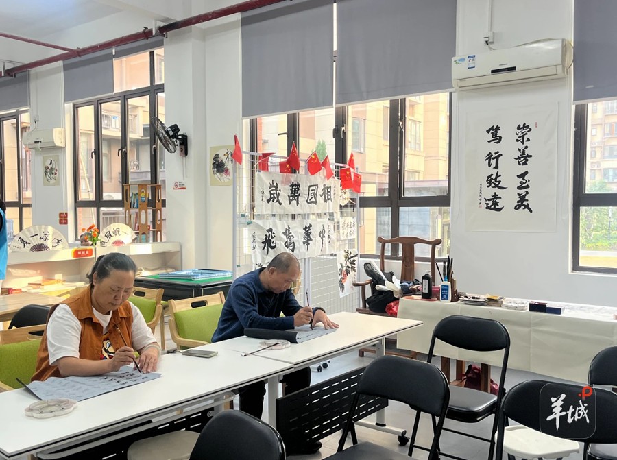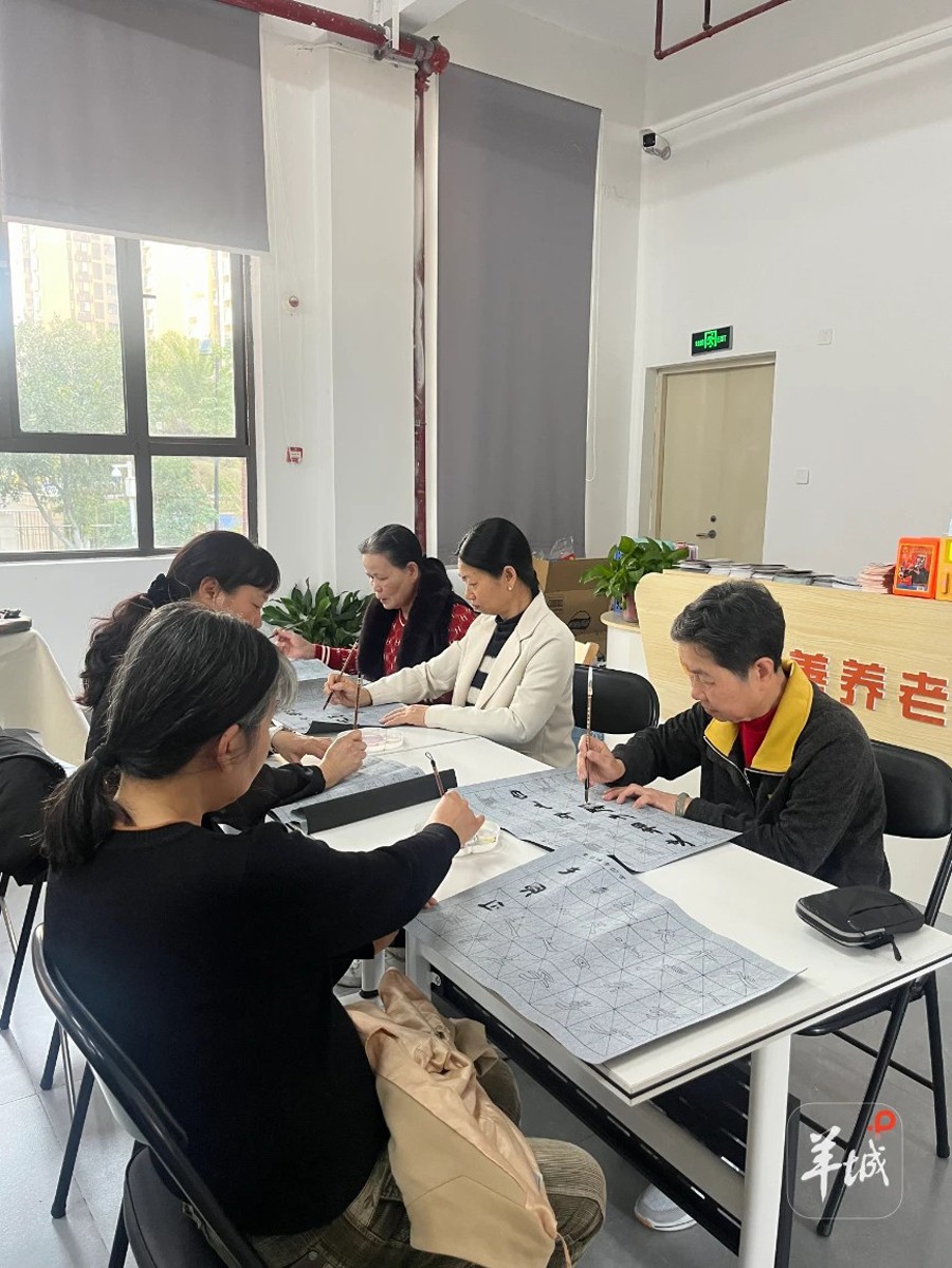 附近居民们在养老中心练习书法