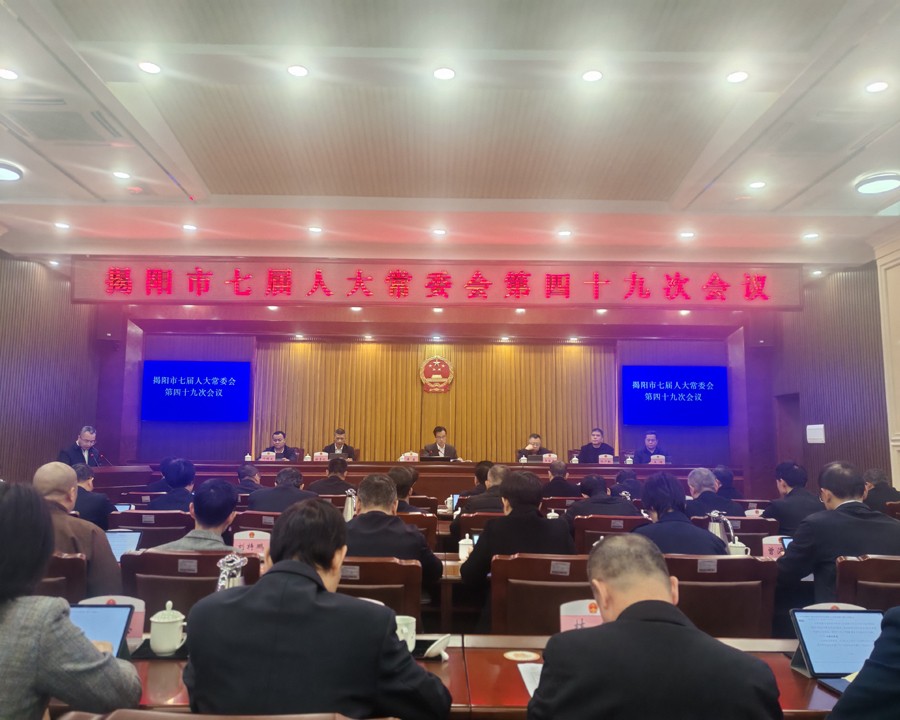 会议表决通过《揭阳市人民代表大会常务委员会工作报告(稿)》《揭阳市人大常委会代表资格审查委员会关于揭阳市第七届人民代表大会代表变动的代表资格审查报告(草案)》《揭阳市第七届人民代表大会第八次会议主席团和秘书长建议名单(草案)》《揭阳市第七届人民代表大会计划预算委员会组成人员调整建议名单(草案)》《揭阳市第七届人民代表大会议案审查委员会组成人员调整建议名单(草案)》,听取揭阳市人民政府关于2025年度民生实事项目实施情况的报告和2026年度民生实事候选项目的报告,并对2025年项目实施情况开展满意度测评;听取和审议揭阳市人民政府关于揭阳市国民经济和社会发展第十五个五年规划纲要草案、揭阳市人民政府关于揭阳市2025年国民经济和社会发展计划执行情况与2026年计划草案的报告、揭阳市人民政府关于揭阳市2025年预算执行情况和2026年预算草案的报告。