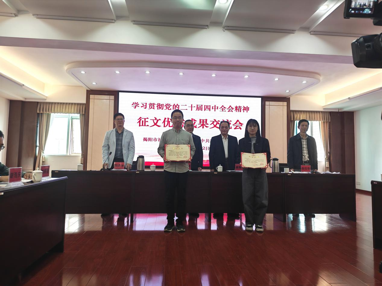 此次活动自2025年10月底启动征文以来,得到全市各界的积极响应,共收到应征理论文章100篇。经专家组严格匿名评审,最终评选出优秀论文20篇,其中一等奖2篇、二等奖4篇、三等奖6篇、优秀奖8篇。交流会现场,主办方为获奖作者颁发了荣誉证书,部分获奖代表围绕党的二十届四中全会精神与“十五五”发展蓝图,结合揭阳实际进行了深入学术交流。