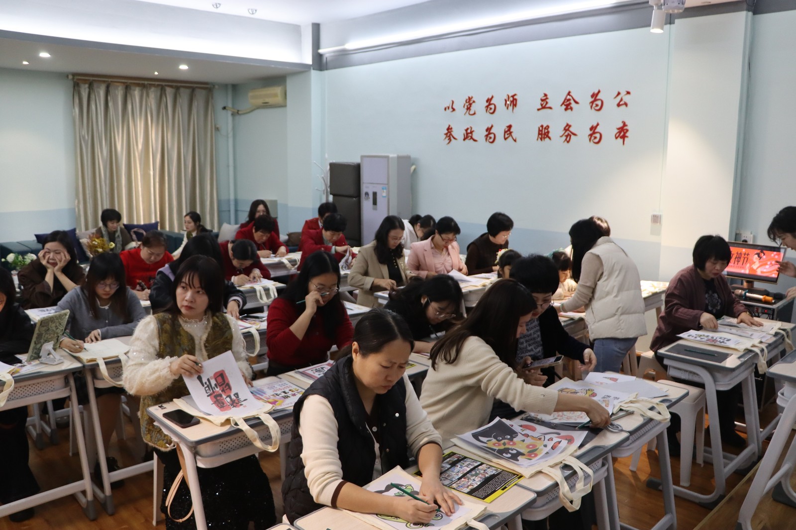 创作过程中,大家或专注勾勒,或相互交流配色心得,现场气氛热烈而融洽。大家一边绘制作品,一边分享生活中的趣事和工作中的感悟,在艺术的桥梁下,不同支部、不同行业间的会员们拉近了距离,加深了彼此的了解,现场洋溢着欢声笑语,充分体现了民进大家庭的团结与温暖。