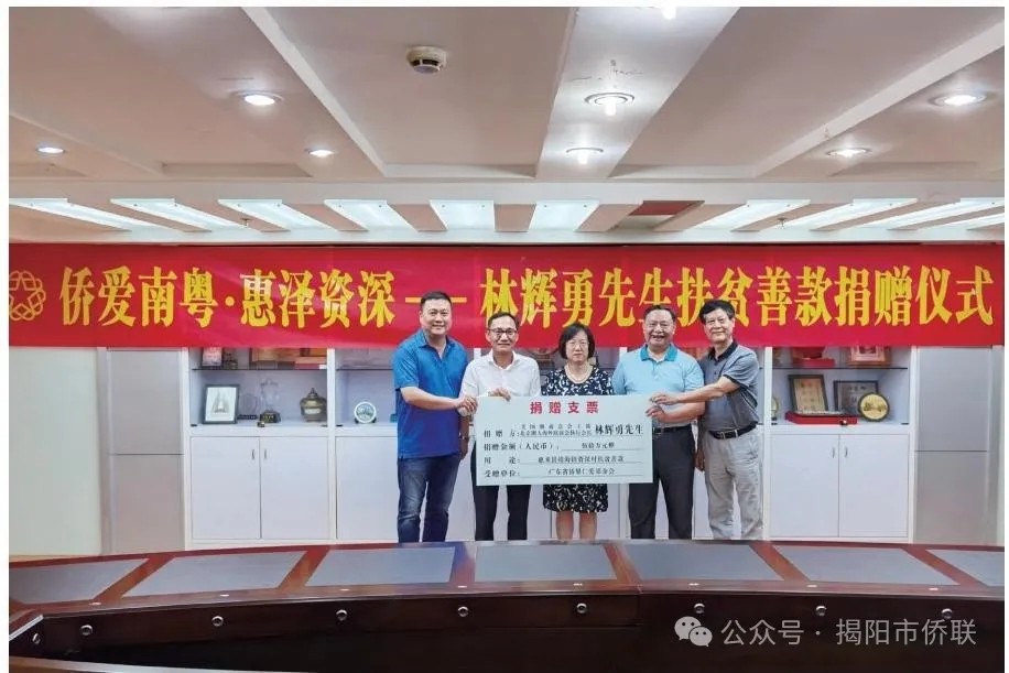 “侨爱南粤 · 惠泽资深——林辉勇先生扶贫善款捐赠仪式”场面。