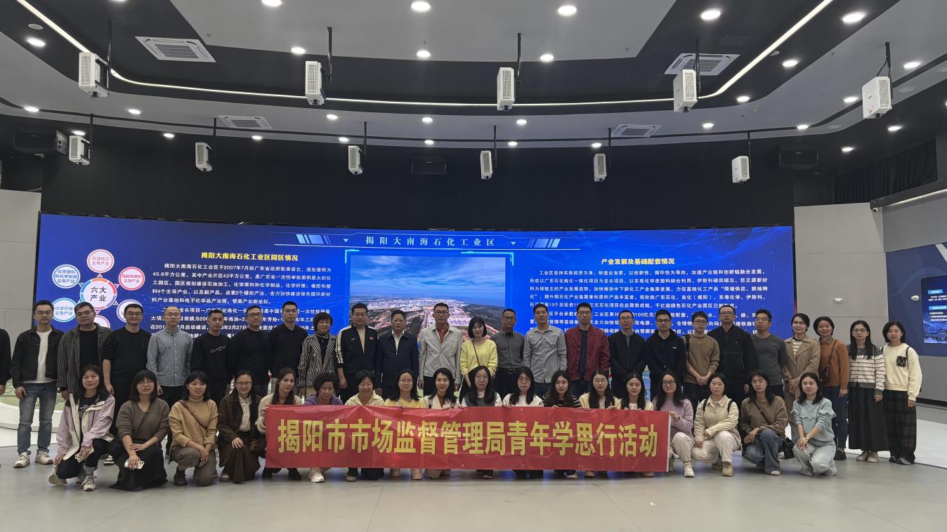 研学的第一站,青年干部们深入惠来大南海石化工业区园区,实地观摩了中石油、东粤化学等龙头企业的现代化生产装置、严谨的安全管控体系以及配套完善的绿色发展设施。青年同志们认真聆听讲解员的介绍,在“一化一海五优特”产业发展的最前沿,深刻学习了企业在标准化生产、质量追溯与合规管理等方面的先进实践经验。